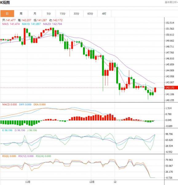 周五盘中,日元/美元上升至0.035点位,增幅0.02%。隔夜日元的表现,推动其走势的因素是投资者似乎在结清空头头寸,尤其是日元等热门融资货币的空头头寸。做空融资货币的投资者正在回补空头头寸。 货币对:日元/美元 行情分析:汇价高见141.908,低见141.131。上一交易日,基本面上看,截至12月19