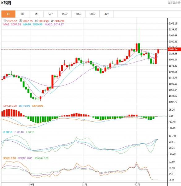 周四(12月14日),黄金市场对最新的数据没有太大反应,在数据公布后的几分钟内,现货黄金继续在2030美元至2040美元之间窄幅波动,现报2038.02美元/盎司。 今日黄金价格技术分析: 从技术面来看,金价获得一些跟进买盘并突破2040美元/盎司区域,将被看涨交易员视为新导火索。随着日线图上的振荡指