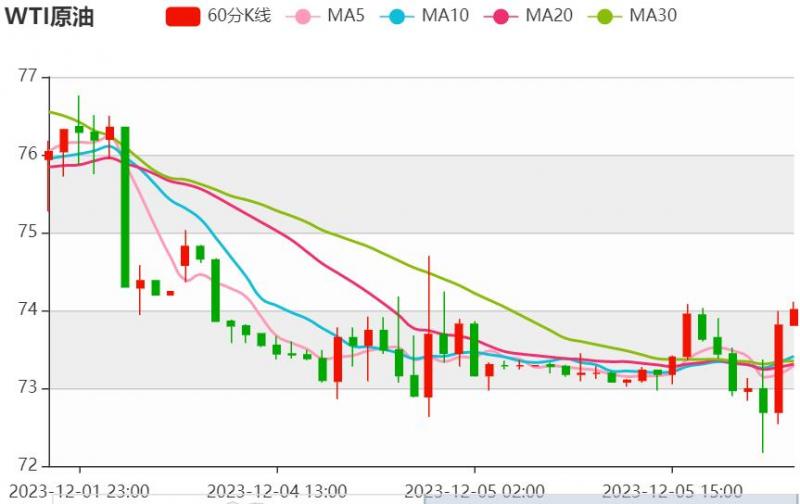 油价周一(12月4日)下跌,因交易商对OC及其盟友在2024年第一季度减产的计划持观望态度。市场分析师表示,对需求下降的担忧也给价格带来压力。 今日原油价格技术分析: 昨天,原油昨日弱势收低,日线三连阴弱势震荡,4小时图维持在小台阶震荡下行当中,昨日维持在中轨之下弱势运行,虽未破位,