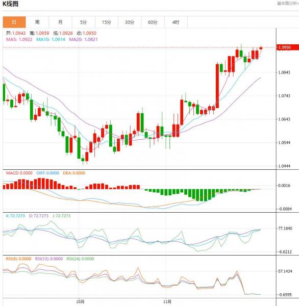 周一盘中,欧元/美元上升至0.0014点位,增幅0.13%。欧元兑英镑触及自11月6日以来的最低水平。 货币对:欧元/美元 行情分析:汇价高见1.0959,低见1.0926。上一交易日,基本面上看,上周五欧元震荡上行,日线小幅收涨。除美元指数持续回调对欧元构成了有力的支撑外,时段内德国表现符合市场预期的G