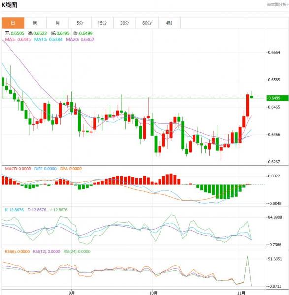 周一盘中,澳元/美元下跌至-0.0012点位,跌幅-0.17%。澳元在上周五交易时段大幅上涨,令交易员意外。此次突然上涨是由于美国公布的就业数据弱于预期造成的。在此上涨势头之后,澳元面临关键转折,遭遇连续三天上涨的关键阻力位。 货币对:澳元/美元 行情分析:汇价高见0.6522,低见0.6495。上一交