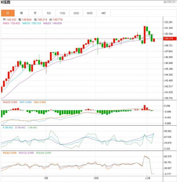 日元周一持稳。欧洲时段,美元/日元报149.66,上涨0.20%。 美国12月非农就业数据暂停 10月份美国非农就业人数降至150000人,低于9月份下调的297000人,低于市场普遍预期的170000人。该数据并未出现重大失误,但支持了美国劳动力市场正在降温且美联储可能能够避免进一步加息的观点。消息公布后美元普遍走