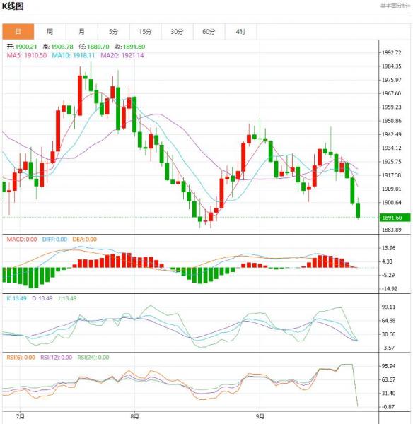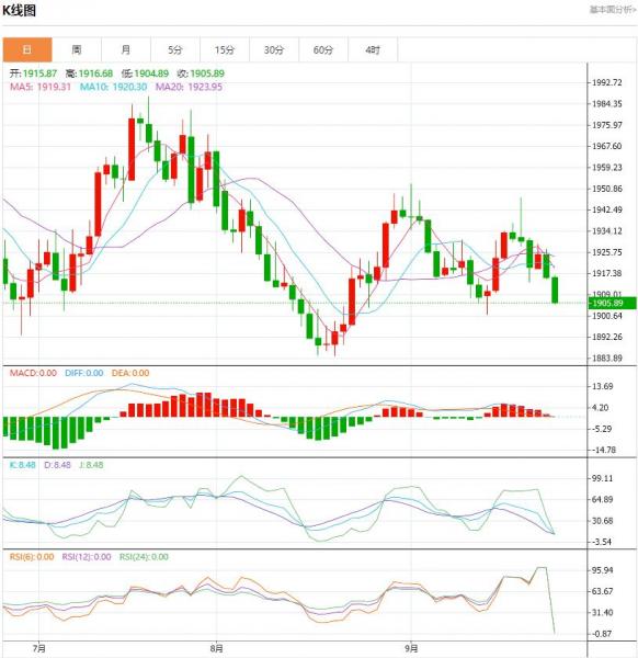 星期一(九月二十五日),油价下跌。上个星期,在美联储的鹰派立场引起全球金融市场的不安,并引发对石油需求的担忧后,对这两份合约的购买热情逐渐冷却。 黄金盘面分析: 本周美国数据继续乐观,7月份美国房价继续上涨。今天晚些时候,我们预计美联储政策制定者鲍曼将在本周晚些时候公布