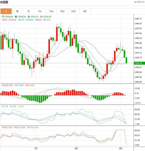 周三(9月6日)进入欧市盘中,对中国和全球经济增长的担忧打压风险偏好,美元守在6个月高位附近,黄金则在昨日重挫后窄幅震荡,目前交投在1925美元附近,市场本交易日关注美国I非制造业I数据。 金价周三跌至一周低点,因美元和美债收益率走强,主要受美国利率将在更长时间内保持高位的预期和对中国经