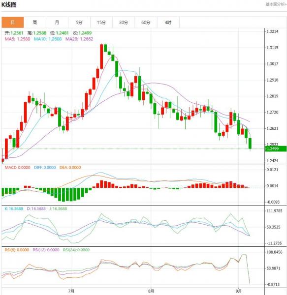 周三盘中,英镑兑美元下跌至-0.0029,跌幅-0.23%。周三(9月6日)欧市盘前,美元维持高位盘整姿态,几乎所有货币都在跌,与此同时,市场关注欧洲经济数据。 货币对:英镑/美元 行情分析:汇价高见1.2588,低见1.2521。上一交易日,基本面上看,英镑昨日震荡下行,失守1.2600关口并刷新3个月低位。除