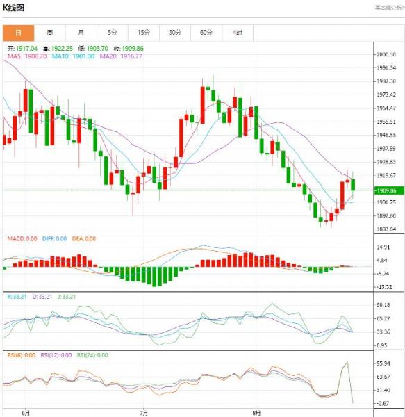 周一(8月28日)进入欧市盘中,市场风险情绪较为积极,黄金维持极其狭窄的区间运动,目前交投在1910美元上方,等待本周关键美国数据的公布,其中焦点无疑是美国非农以及零售销售报告。 黄金周一持稳,美联储主席鲍威尔在利率问题上立场强硬,本周市场将从公布的经济数据中寻求方向,以确认利率走势。