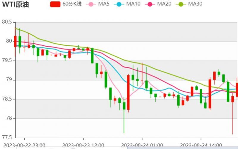 周五(8月25日),美原油小幅反弹,一度创两个交易日新高至79.59美元/桶,欧洲柴油库存下滑的报告出炉后,逢低买盘涌入,给油价提供反弹动能,而且有报道称沙特可能会将100万桶/日的减产计划延长至10月,令市场对需求前景的担忧有所缓解。 今日原油价格技术分析: 美原油市场昨日收盘走低,今日日