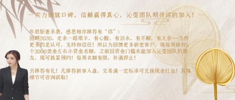 实力铸就口碑,信赖赢得真心,沁雯团队期待你的加入! 年底钜惠来袭,感恩相伴推荐有“你”: 回顾2020,走来一路艰辛,有心酸,有泪水,有不解,有无奈……当然更多的是认可,支持和信任!所以为回馈更多新老客户,现每周给到5个3000美金左右小资金名额,之