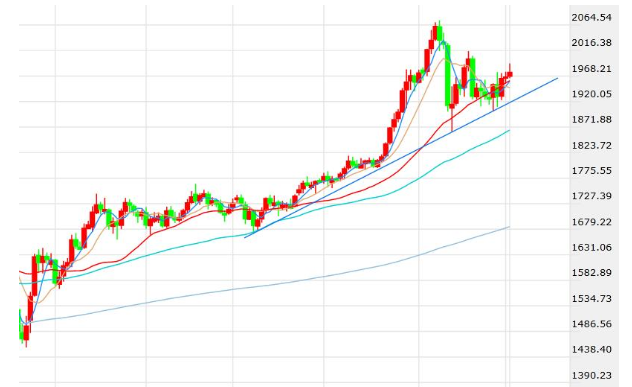 【一、黄金行情回顾】 国际现货黄金周二(9月1日)震荡反弹,在短线急跌后又迅速站稳脚跟,并再度发起反攻,盘中最高触及1992.10美元/盎司,一度升至近两周高位,欲重新站上2000美元关口。美元指数跌至28个月新低为黄金带来了有效支撑,美联储新政的影响持续发酵。不过美联储现在依然陷入艰难的处境,一方面,在疫情局势