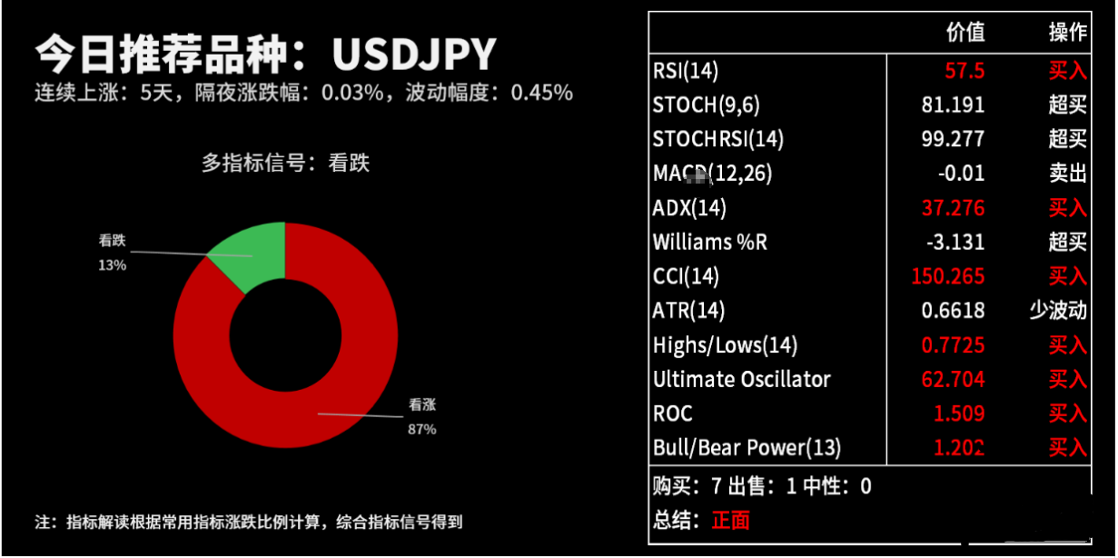 根据外汇相关性实时追踪,UDJY和CADJY在30分钟周期下相关系数达到0.92。 日内推荐交易品种及相关策略: 美元日元(上涨:5天,隔夜涨跌幅:0.03%,波动幅度:0.45%。 根据外汇相关性实时追踪,UDJY在30分钟周期下与部分货币的相关性排行如下图: 其中,UDJY和CADJY在该周