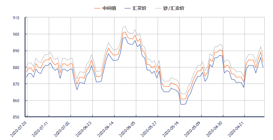 港币兑换人民币汇率(2020年7月20日) 类别 汇买价 钞/汇卖价 中间价 更新时间 港币兑换人民币汇率 90.08 90.44