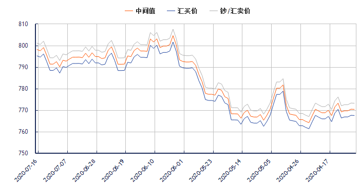 欧元兑换人民币汇率(2020年7月17日) 类别 汇买价 汇卖价 中间价 更新时间 欧元兑换人民币汇率 794.47 800.32
