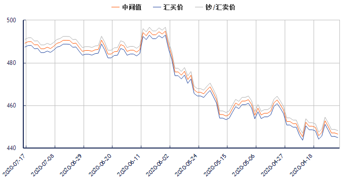 澳元兑换人民币汇率(2020年7月17日) 类别 汇买价 汇卖价 中间价 更新时间 澳元兑换人民币汇率 487.39 490.97