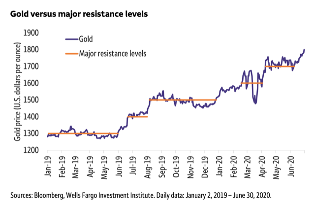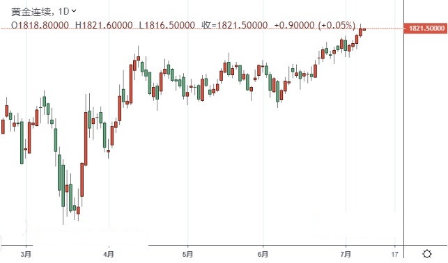 自去年以来,金价一直在急速上涨,突破了1300美元、1400美元、1500美元、1600美元、1700美元以及现在的1800美元等各种关键水平。对于那些怀疑现在入市是否太晚的人来说,富国银行给出了一个令人放心的答案:“我们仍喜欢目前的黄金水平。” 周三(7月8日),现货黄金升至九年新高,最高触及1818.06美元/盎司。