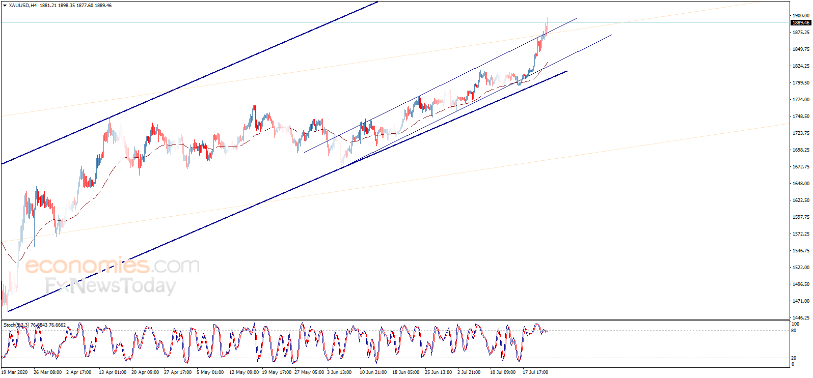 周四现货黄金逼近1900美元,因美元走软和预期更多刺激措施出台以重振遭受疫情打击的经济,而美国上周初请失业金人数的增加引发了人们对经济复苏放缓的担忧。总体而言,随着黄金逼近1900美元关口,同时基本面不存在明显施压黄金的因素,黄金站上1900美元或板上钉钉,市场将关注黄金能否上探纪录高位1921.18美元,若站上,