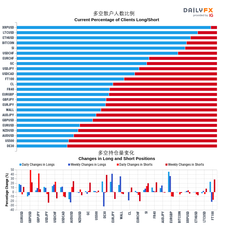 摘要:最新IG散户持仓数据显示,现货黄金散户多空比为1.83,多头百分比曲线未能反转上行而是缓速下行,释放出看涨信号;WTI原油散户空多比为1.08,多空力量仍未拉开差距,结合当前散户情绪以及最新持仓量变化以及三条辅助线,为谨慎看涨WTI原油;其他资产方面,现货白银可能反转上升;澳元/日元、欧元/日元、欧元/英