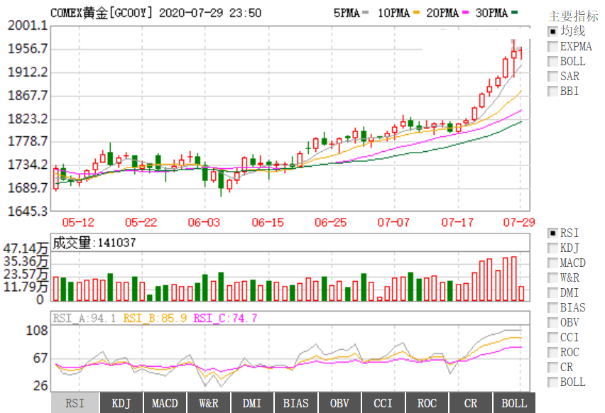 国际现货黄金周三(7月29日)在美联储利率决议公布后一度冲高至1980.40美元/盎司,但随后迅速回落。最新公布的美联储利率决议并无太多新意,宣布维持利率不变的同时,继续保持宽松立场,这点是符合市场预期的。 委员会没有提供任何进一步的迹象,说明改变汇率需要采取什么措施。市场一直在寻找强化的“前瞻性指引”,以表
