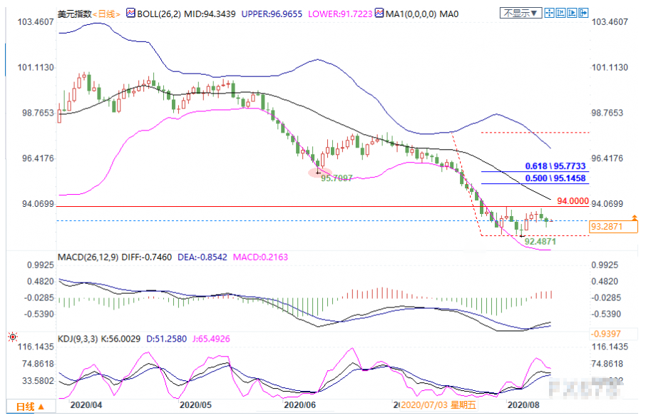 周五(8月14日),美元指数维持窄幅震荡,尽管回升93.00关口上方,但整体表现相对疲软,这增强了黄金对持有其他货币投资者的吸引力。现货黄金前一交易日从近三周低点反弹约2%,收复部分失地。眼下,投资者的焦点仍是有关美国救助计划磋商,美国国会和白宫就疫情救助协议始终没有达成统一,目前尚不知何时会重启谈判。 ★8