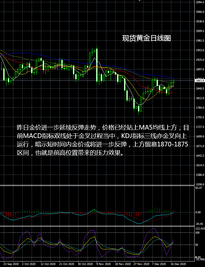 大田环球建议今日关注: 美国11月营建许可月率; 美国11月新屋开工年化月率; 美国截至12月12日当周初请失业金人数; 英国央行公布利率决议以及货币政策会议纪要。 压力:1868-1875-1880 支撑:1860-1855-1848 今日现货黄金行情操作建议: 1869-1870区间下看,目标1866-1