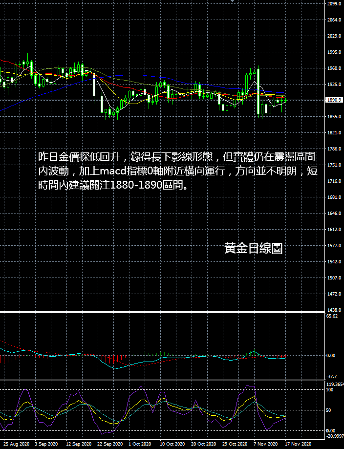 大田環球建議今日曜ⅲ 歐元區9月季調後貿易帳; 歐元區第三季度季調後GD季率修正值; 美國10月I年率; 美國11月密歇根大學消僬咝判闹笖党踔怠 壓力:1883-1890-1898 支撐:1875-1870-1860 今日饍r格走勢操作建議: 1883-1884區間下看,目標1880-1876,風