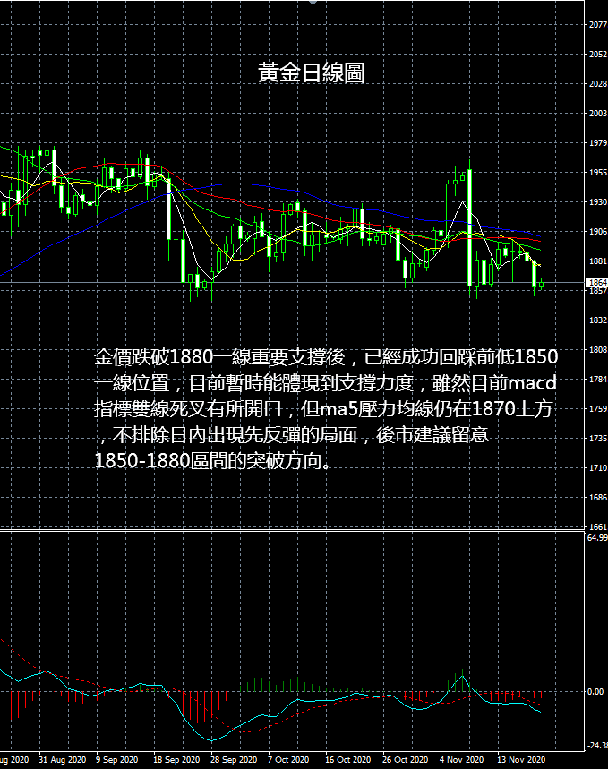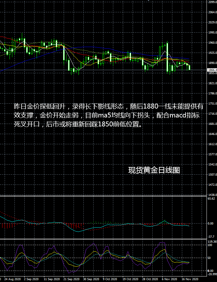 大田環球建議今日曜ⅲ 歐元區11月消僬咝判闹笖担 2020年FOC票委、達拉斯聯儲主席卡普贪l表講話; 2020年FOC票委、達拉斯聯儲主席卡普虆⒓右粋有昴茉磁c經濟的線上會議問答環節。 壓力:1868-1875-1883 支撐:1860-1850-1840 今日現貨鹦星椴僮鹘ㄗh: 1868-1