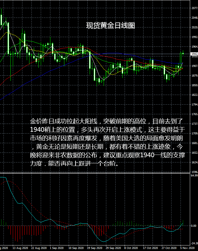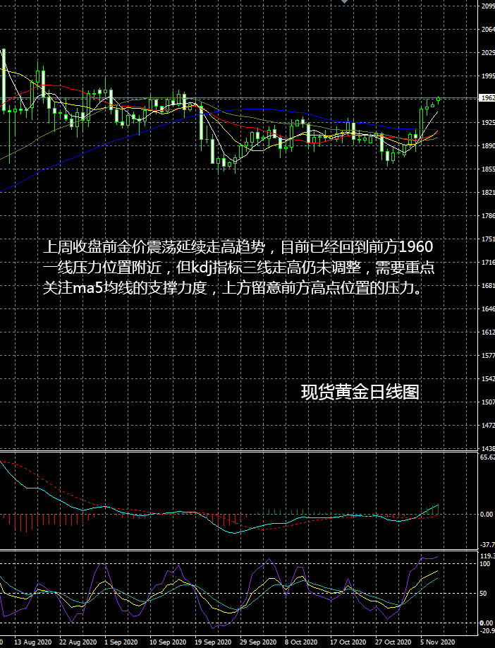 现货黄金市场行情现状简述:受到美国大选影响,现货黄金价格大幅走高,但上方压力较为密集,上周末金价涨势止步于1960美元一线,该位置的防守情况将左右日内金价的走势方向,本周金价短暂调整後能否进一步走高,需要继续留意1960一线的争夺情况。 大田环球现货黄金参考新闻:北京时间周日凌晨00:30左右,多家美