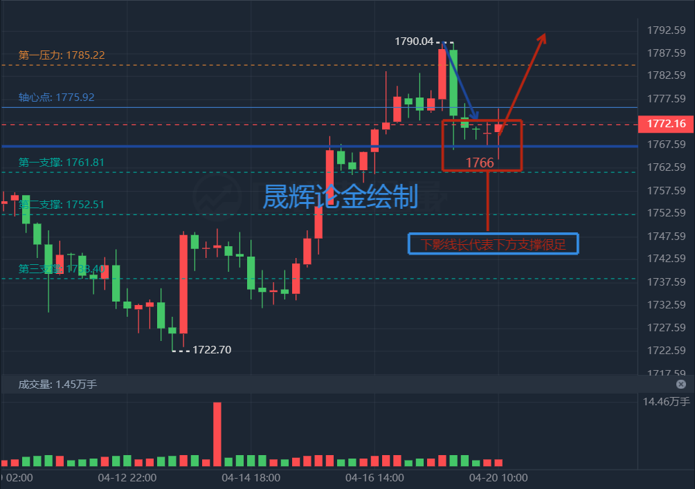 4月20日金价走高,现货黄金一度升上1780关口,较日低上扬近17美元,美债收益率回落令金价得到支撑;随着美股两连跌、一些国家新冠病例激增,黄金的避险需求也有所增长;但因美元大幅反弹,金价未能推动其收复昨日的损失,尾盘回落至1778美元附近。 昨日晟辉也是一直坚持强调为什么