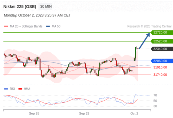在32060.00之上,看涨,目标价位为32520.00,然后为32720.00。 转折点:32060.00 交易策略:在32060.00之上,看涨,目标价位为32520.00,然后为32720.00。 备选策略:在32060.00下,看空,目标价位定在31910.00,然后为31740.00。 技术点评:RI技术指标向上运行。 阻力位: 32900.00 32720.00 32520.