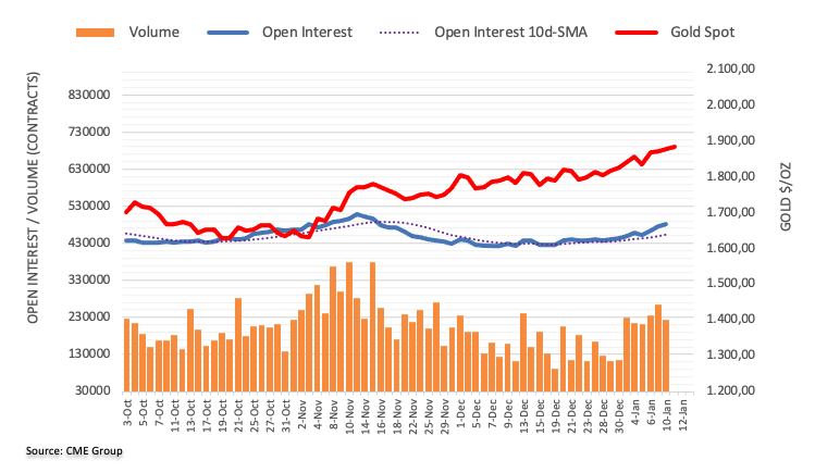 根据C集团的初步数据,周二,黄金期货市场的未平仓合约连续第三个交易日增加,这次增加了大约5.7万份合约。相反,成交量扭转了连续两个交易日的增长势头,减少了近4.1万份合约。 黄金:下一个上行目标是2000美元大关 金价延续了上半周的升势,周二在1880美元区域徘徊。金价走高是在未平仓合约上升的背景下进
