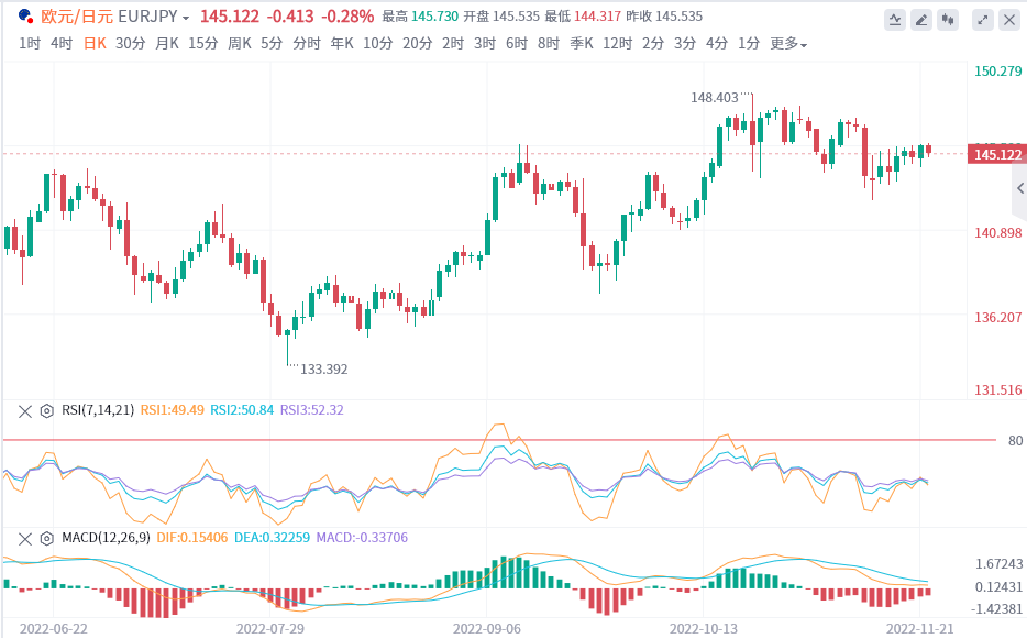 欧元/日元本周初的乐观情绪消退,并在周二逆转下行测试145.00。 到目前为止,修正反弹看起来仍有效,该交叉盘应该会在截至目前的11月高位147.11(11月9日)处面临初始阻力。在后者之上,可能会打开看向2022年的峰值148.40(10月21日)的大门。 从长期来看,只要位于关键的200日移动均线138.54上方,乐观前景预