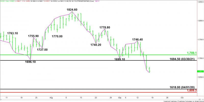 黄金期货周五早些时候下跌,测试了两年多的低点,因为美联储激进加息的预期提高了美国国债收益率,同时将美元保持在24个月高点的打击距离之内。 75个基点利率上调 在下周9月21日美联储利率决议公布之前,美国金融市场交易员在8月份消费者通胀意外上升后,将定价为75个基点。 周四看到了经济强劲的迹象,由于汽