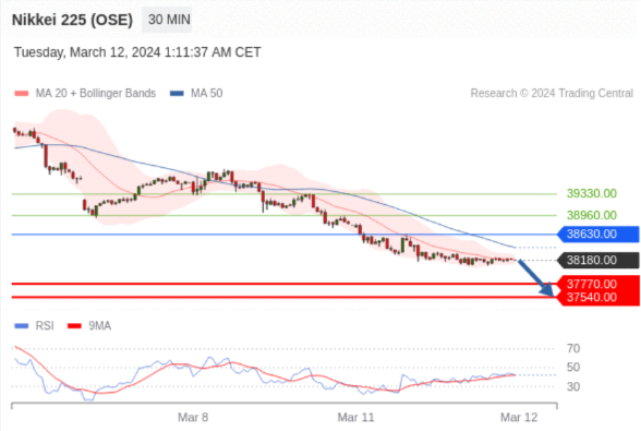周一(3月11日),日本股市创去年10月4日以来最大单日跌幅,两大基准股指跌幅均超过2%,原因是有关日本央行将加息的猜测不断升温,推高日元汇率,从而损害出口商的利益。 东京股市的东证指数周一收盘大跌2.2%,报2,666.83点,33个分行业中有31个板块下跌。 以出口商为主的日经225指数收盘重挫2.2%,报38,820.49点,