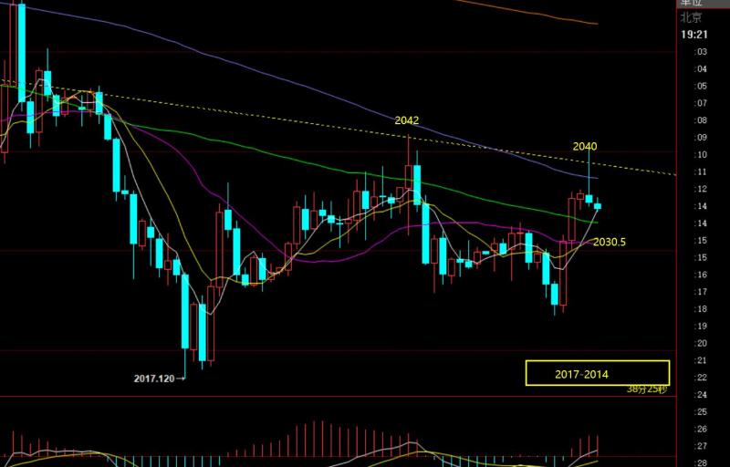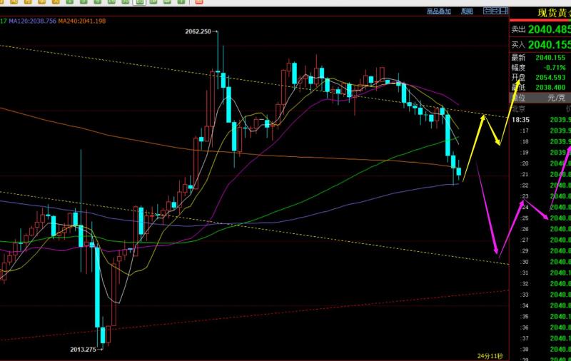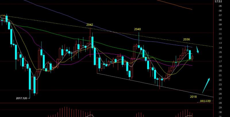 郑氏点银:黄金即将结束下跌调整转趋势上攻,原油中期也或发力 回顾昨日行情走势及出现的技术点: 第一,黄金方面:昨日依旧是震荡,围绕2040-2020之间,不过它来回过山车相对周初更加激烈,先2020上涨至2041,刺破前一日高点,再冲高回落至2015,刺破2018-17关键趋势支撑线