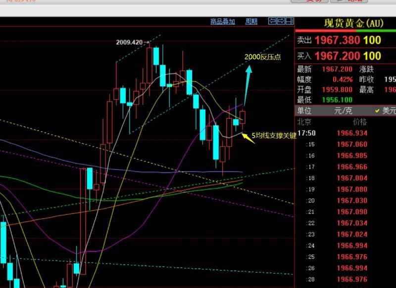郑氏点银:黄金2000站稳后将进一步走高,原油仍偏弱 回顾上周五行情走势及出现的技术点: 第一,黄金方面:上周四和周五由于美国假期,总体波幅很小,但黄金日线级别一直处于5均线上方强势运行,并且有明显的一些规律:日线收阴调整后,第二日都容易收阳走高,周四依