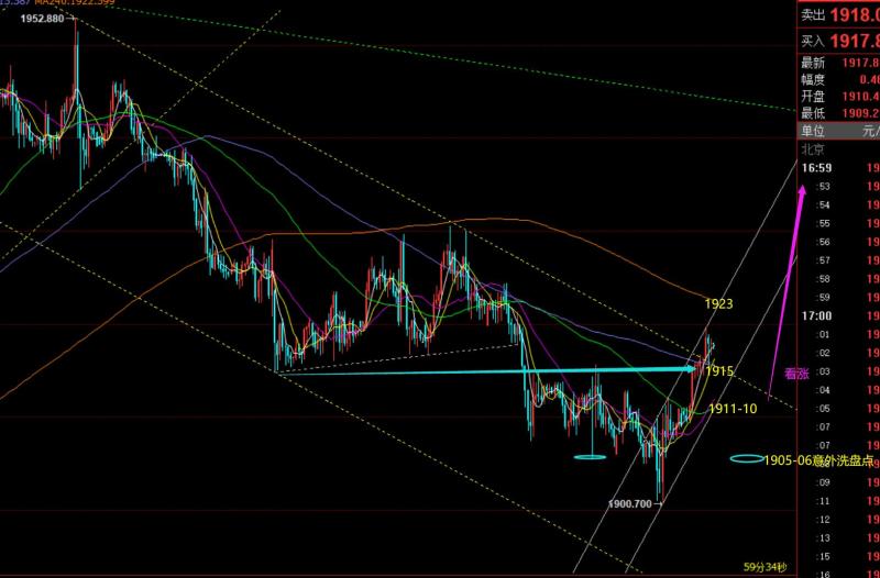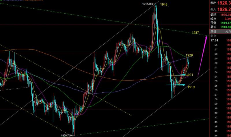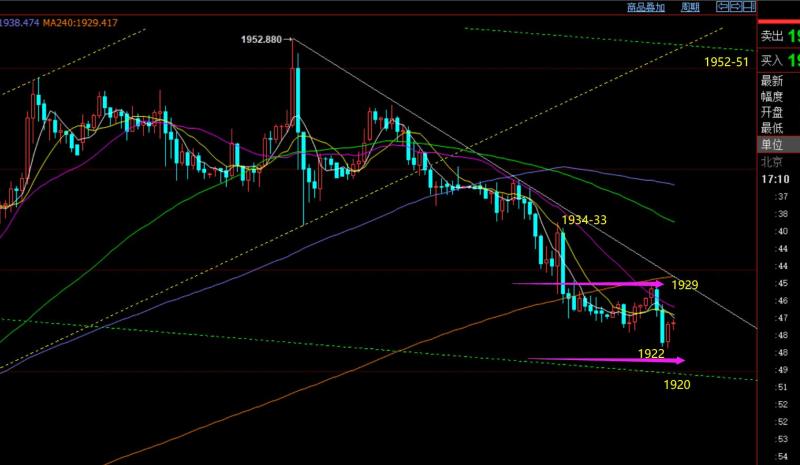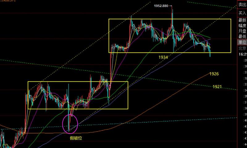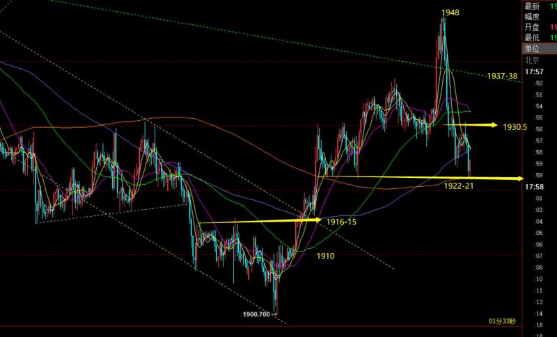 郑氏点银:白银“先锋部队”启动,黄金将跟随,原油10均线支撑 回顾昨日行情走势及出现的技术点: 第一,黄金方面:昨日亚盘直接续跌,多次试探小时线年均线1921-22关键支撑,小幅上拉承压1930后,美盘下破此位置,打到了1914低位,也就是刺破1915前面顶底位置;原本想等价