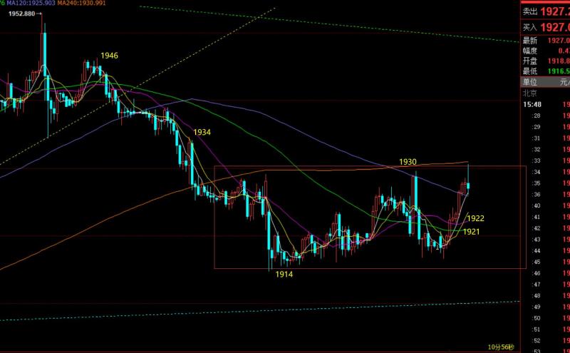 郑氏点银:1930成顶底支撑继续看涨,原油一个劲的逼空摸高 回顾昨日行情走势及出现的技术点: 第一,黄金方面:昨日整体以区间长时间横盘来消化短期下跌动能,继而进一步推动拉升破高,1922-23作为日内风水岭,守住它则维持震荡逼空拉升,盘中给出1923、1926