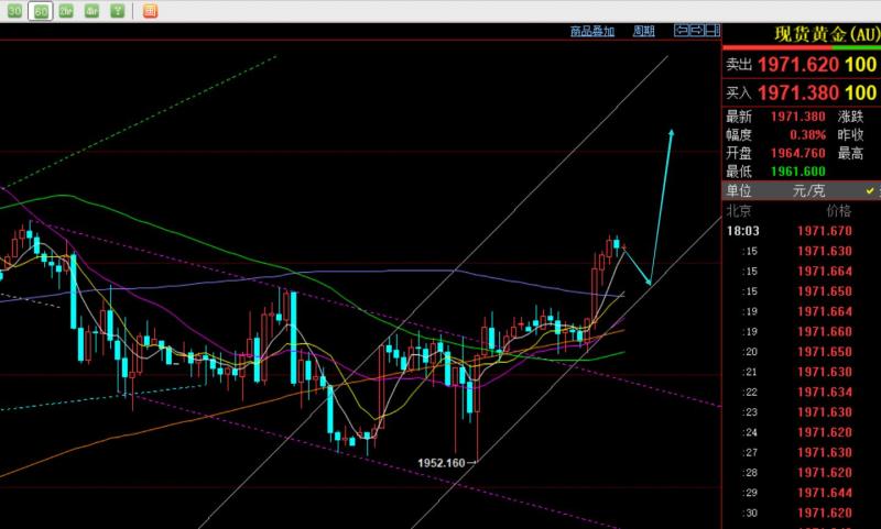 郑氏点银:黄金短期企稳拐点就在这两日,原油强势走高 回顾昨日行情走势及出现的技术点: 第一,黄金方面:昨日研报指出日线10均线以及上行通道下轨支撑都在1960附近,此位置上逢低仍看涨,美盘前后抵达1968,通知上周五1959-56持仓看涨的和昨日1960上持仓看涨的盈利;同时