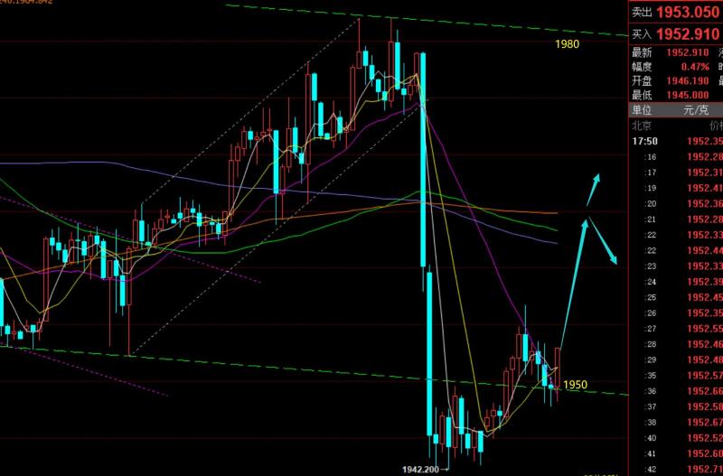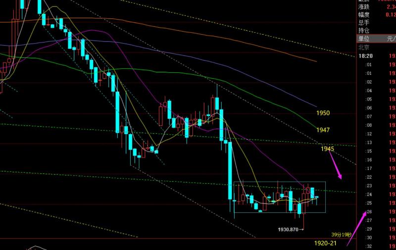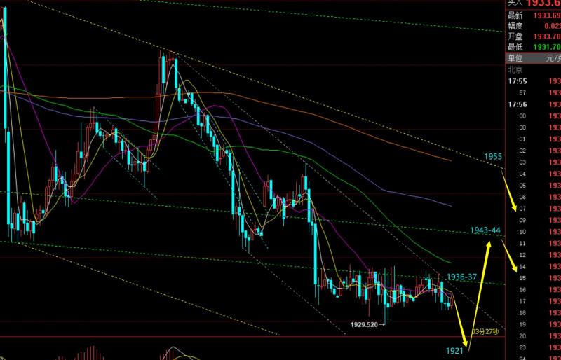 郑氏点银:黄金留意拐点支撑1921,原油回归强势拉升 回顾昨日行情走势及出现的技术点: 第一,黄金方面:昨日一天运行于1938-1930之间,底部窄幅压制横盘,打不开空间,且没明确运行方向;盘中安排1935多,先预判先反弹修正至1944-45,再1950下进行打压回落,但等到美盘前,
