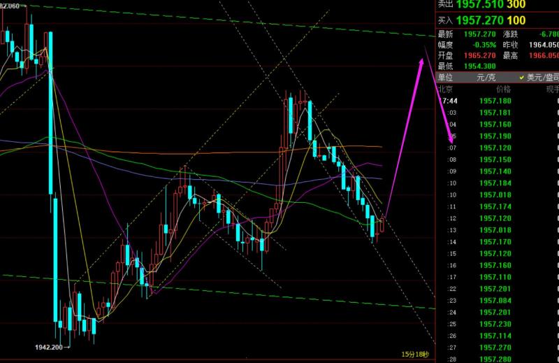 郑氏点银:黄金来回大幅穿梭不延续震荡,原油接着单边拉升 回顾昨日行情走势及出现的技术点: 第一,黄金方面:周末指出金价将走宽幅来回震荡,没想到却来的如此之快;当周一收阳继续反弹后,按小时线宽幅运行通道来讲,想着先拉升给到通道上轨1979-78下再去