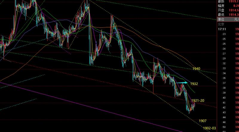 郑氏点银:黄金1923下成反压,或还有诛心一箭,原油继续单边 回顾昨日行情走势及出现的技术点: 第一,黄金方面:本周二隔夜依托日线趋势支撑1923短多,昨日抵达1932预期目标;然后再次依托趋势支撑1923反复多测试,但可惜只反弹至1928,离1930目标差2美金,最后下破刺破15