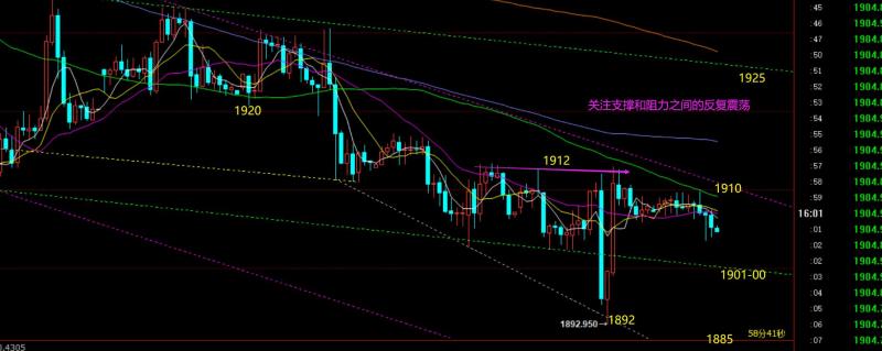 郑氏点银:黄金探底拉升1900再次争夺,原油继续震荡反弹 回顾昨日行情走势及出现的技术点: 第一,黄金方面:昨日亚盘承压1912-13下行,欧盘触及1902再次企稳,给出1904短多,抵达1912目标,美盘数据全利空,一下子全跌回去,且失守1900-02通道支撑,但由于并未先回抽确认,也就不