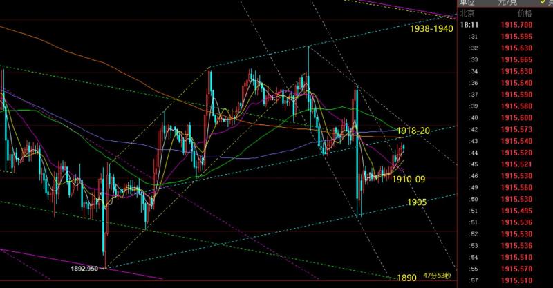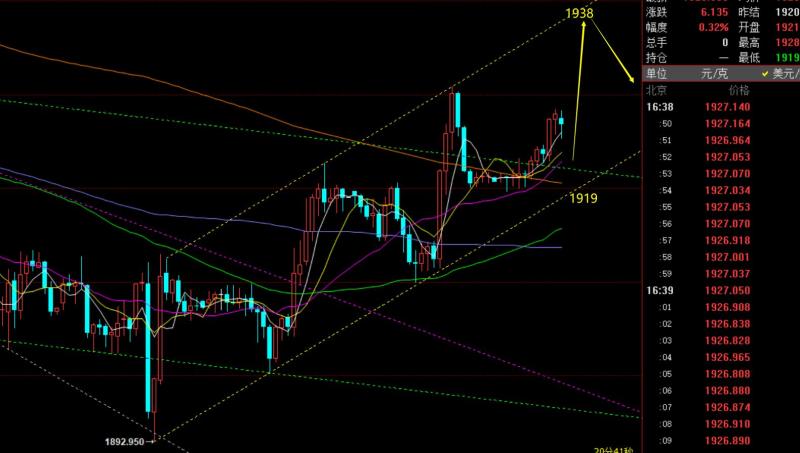 郑氏点银:黄金终于结束短期下跌,将迎接走强上攻,油看涨 回顾昨日行情走势及出现的技术点: 第一,黄金方面:昨日亚欧盘黄金先一波上拉刺破通道阻力1938-37,随后小时线大阴又回落于通道之内处于横盘压制,按照这种技术走法,一般来讲美盘很容易先下探一波,再企稳上拉;