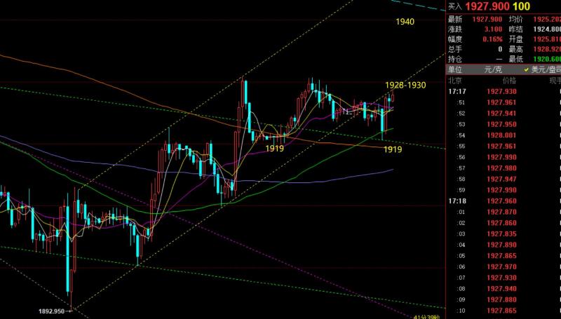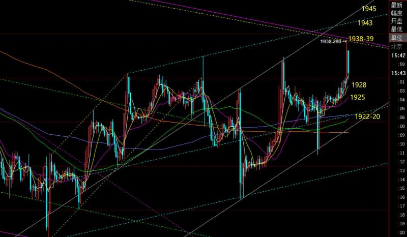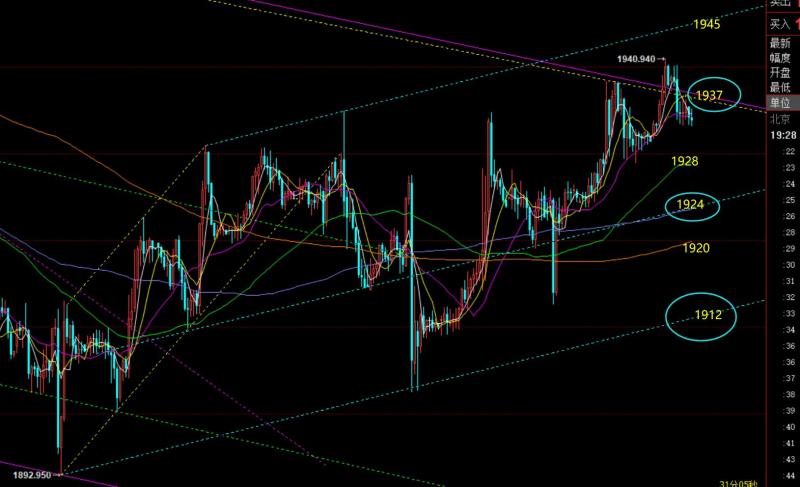 郑氏点银:今晚CI预判小幅走高,黄金原油则先跌后涨 回顾昨日行情走势及出现的技术点: 第一,黄金方面:昨日亚盘直接震荡走高,欧盘前加速一波拉升,抵达1938目标,隔夜1920多单也就全数拿下;原本计划1938承压看跌,再拉低企稳继续多,但见多次试探1936-38