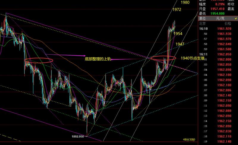郑氏点银:黄金1938目标终于抵达,原油72.9节点支撑 回顾昨日行情走势及出现的技术点: 第一,黄金方面:昨日亚盘回踩再次守住通道支撑1920上,欧盘横盘运行于1922-1926,美盘突袭一波两次砸盘,急跌失守节点支撑,给到1913一线后又大阳反包回归1920上方,那么这样的走势情况一般是