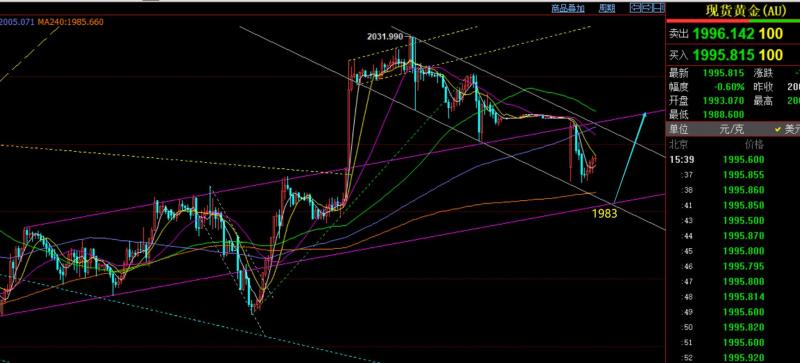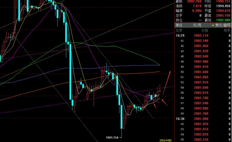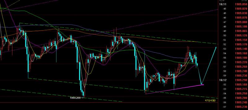 郑氏点银:黄金大阴失守日线通道回踩支撑,短期或转跌调整 回顾昨日行情走势及出现的技术点: 第一,黄金方面:昨日早盘直接震荡慢涨,整个欧盘一路依托小时线10均线逼空运行,则文章提示依托1999支撑看慢涨之后的加速上拉概率,但反复承压2005不上破,持续经历几个小时,担