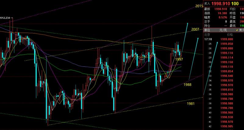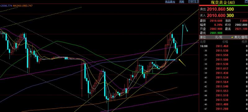 郑氏点银:黄金早间猛冲延续看涨,原油破通道上轨待观察 回顾昨日行情走势及出现的技术点: 第一,黄金方面:昨日早盘支撑1989一线直接迎来一波拉升冲破2000关口,欧盘延续上拉至2007-08高度,美盘前后出现的回测就容易诱空,幅度比稍大一点,刺破了欧盘起涨点1997,最终是
