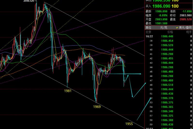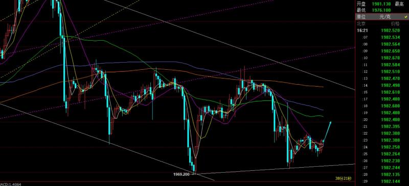 郑氏点银:黄金短期多空急速变化,日线长下影探底看涨 回顾昨日行情走势及出现的技术点: 第一,黄金方面:周二日线收阳,仍站稳于日线通道回踩支撑线上,因此昨日而言,回测是先跟多的,但价格大幅度下滑,直接破位1981周二低点,隔夜的涨幅直接洗回去;当欧盘小时线连阴下