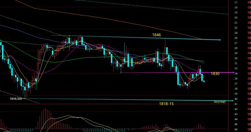 回顾昨日行情走势及出现的技术点: 第一,黄金方面:昨日亚欧盘一路承压小时线中轨,它是一定转跌的标志,也就提出1850一线继续看承压下行;当美盘失守1845-43支撑有效后,就意味着有延续下跌动能,最终在鲍威尔讲话刺激催化下,加速下跌,一口气破位1837、1830、1820等多次关键支撑,最低触及181
