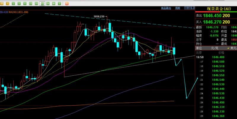 郑氏点银:黄金1846下继续看跌等待下破,原油74.5下拐点 回顾昨日行情走势及出现的技术点: 第一,黄金方面:昨日亚欧盘持续震荡走弱,美盘虽出现一波反抽,但仍无法突破早间开跌口1844一线,最终再度承压回测,盘中依托日线短期均线下继续空为主,给