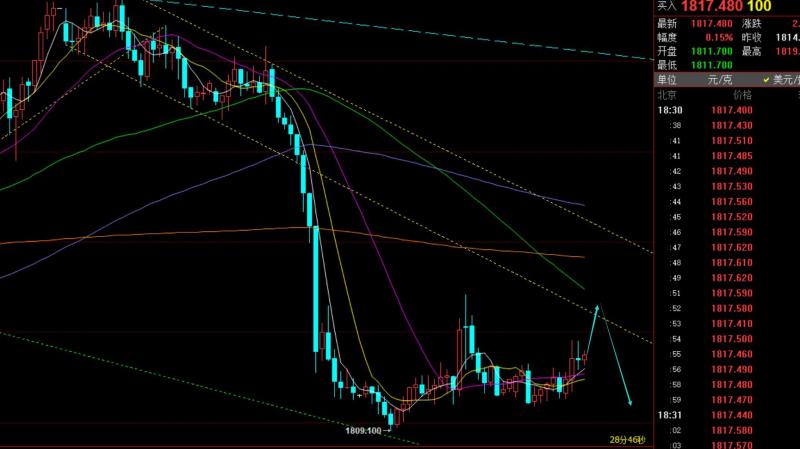 回顾昨日行情走势及出现的技术点: 第一,黄金方面:昨日亚欧盘一直维持底部1814下弱势运行,美盘上破1815来了一波震荡上冲,差点突破1820,最终后半夜多次承压1820,也就是日线5均线阻力下,今日迎来一波下探,最低试探了1805一线,盘中布局的空单也全数盈利,虽有低位入场点不佳,但方向把握没